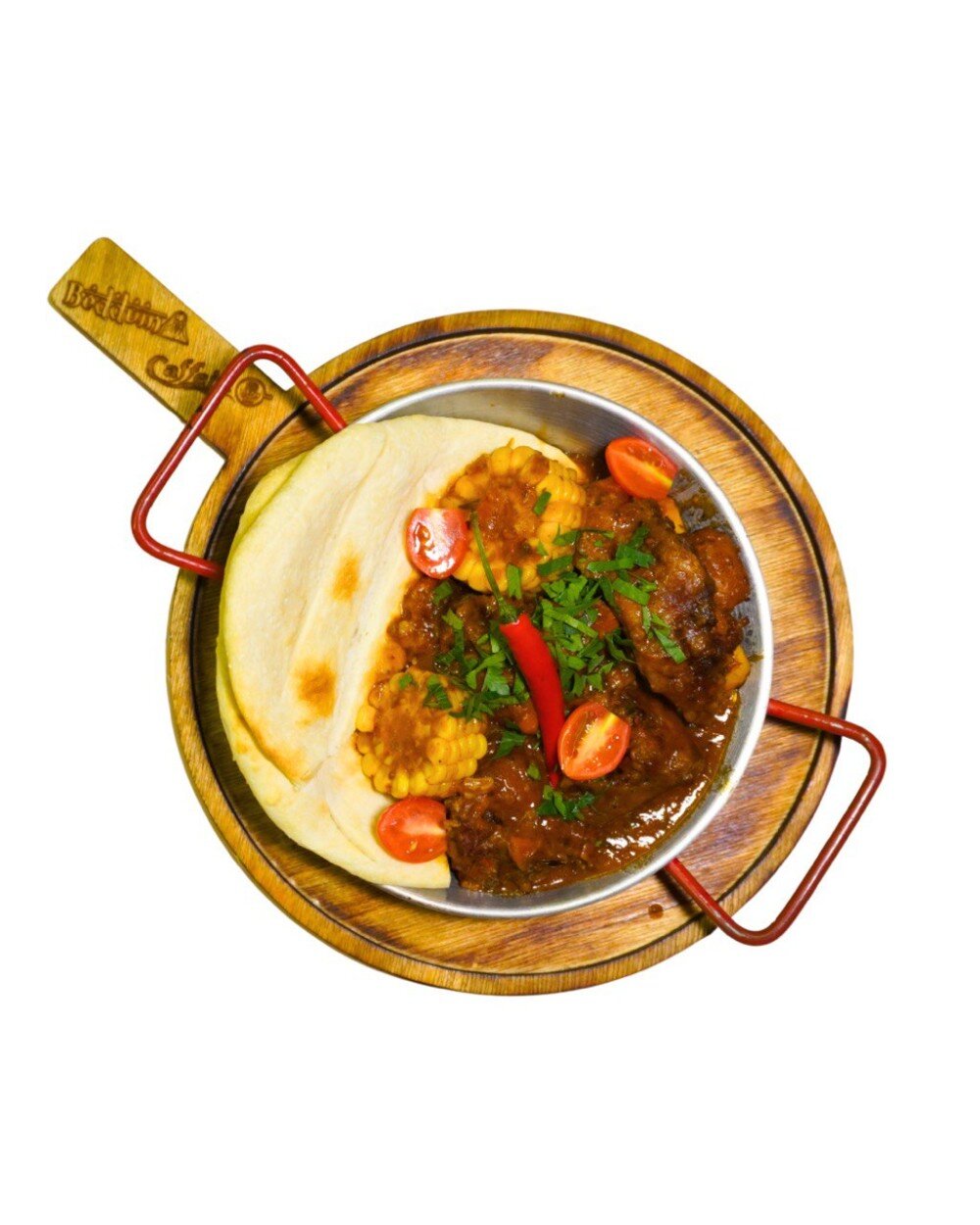 Нежное рагу из бычьих хвостов, томленное до мягкости с добавлением сладкой кукурузы и овощей и лепешка фокачча